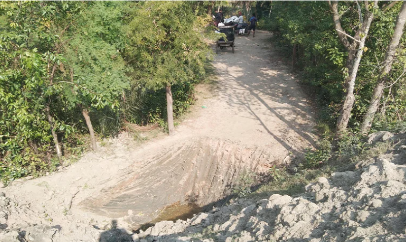 সড়কে গর্ত খুঁড়ে চলাচলের পথ বন্ধ করলেন ইটভাটা মালিক, গ্রামবাসীর দুর্ভোগ