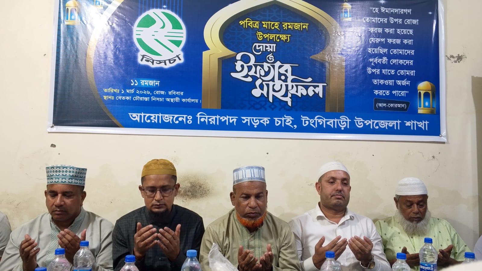 মুন্সীগঞ্জের টঙ্গীবাড়ীতে নিরাপদ সড়ক চাই নিসচা'র উদ্যোগ ইফতার ও দোয়া মাহফিল অনুষ্ঠিত হয়েছে। রবিবার সন্ধ্যায় নিরাপদ সড়ক চাই টঙ্গীবাড়ী উপজেলার বেতকা অস্থায়ী কার্যালয়ে এই ইফতার মাহফিল ও দোয়া অনুষ্ঠিত হয়।