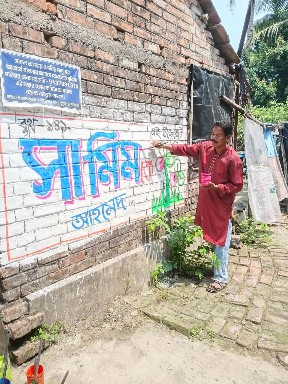 মগরাহাট পশ্চিমে তৃনমূল কংগ্রেসের প্রার্থীর সমর্থনে দেওয়াল লিখনে সাবেক পুলিশ কর্মকর্তা