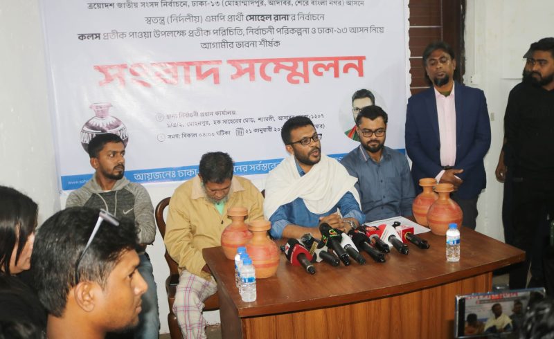 চাঁদাবাজি ও মাদকমুক্ত ঢাকা-১৩ গড়তে ‘কলস’ প্রতীকে ভোট চাইলেন সোহেল রানা”