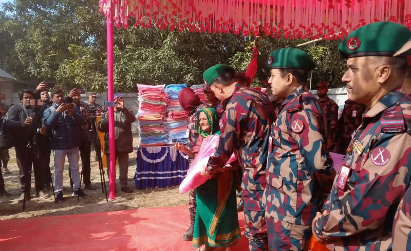 শিবগঞ্জের কিরনগনজ সীমান্তে ৫৯ বিজিবির অসহায়দের শীতবস্ত্র বিতরন
