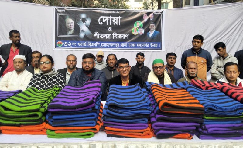 মোহাম্মদপুরে ৩২নং ওয়ার্ড বিএনপির শীতবস্ত্র বিতরণ ও বেগম খালেদা জিয়ার রূহের মাগফিরাত কামনায় দোয়া